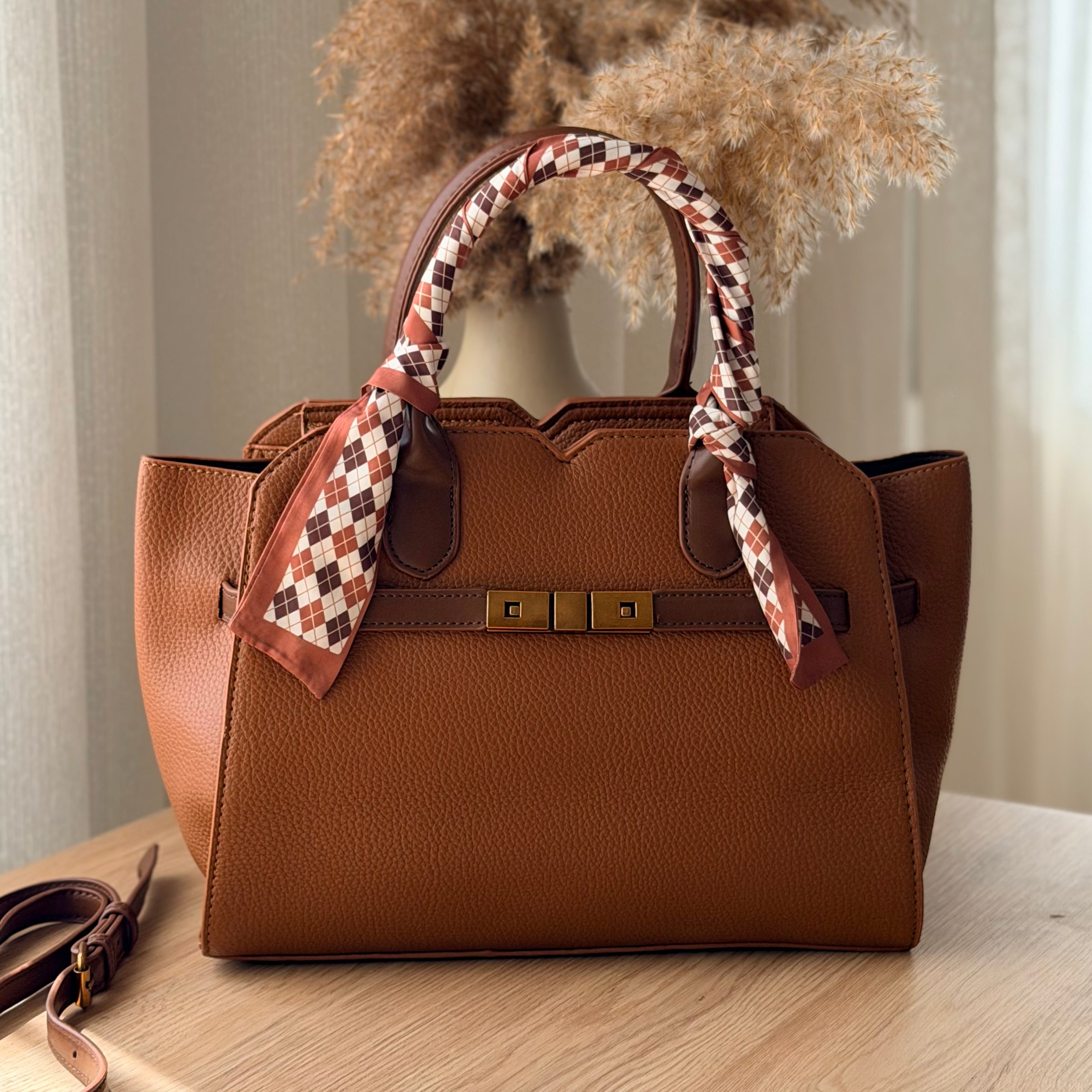 Sac spacieux au design chic et lumineux. Foulard décoratif inclus pour un style féminin. Pratique avec double porté.